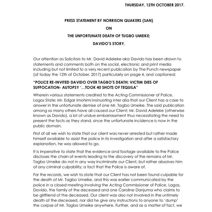 ‘Our client maintains that he has not in any way lied about what he knows about the unfortunate incidence’ the statement reads.